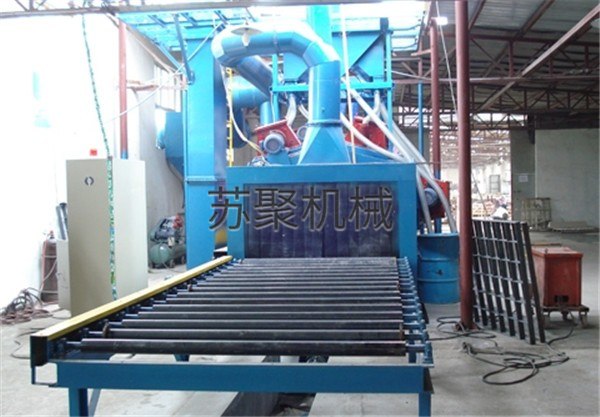 輥道式拋丸機(jī)是利用高效拋丸器拋出的高速?gòu)椡枇魇鴵舸虺橛蜅U表面上氧化皮、銹層及其雜物,使之獲得精細(xì)的光亮表面,使工件顯出金屬本色,有助于提高釬桿涂飾質(zhì)量,達(dá)到防腐、護(hù)管、延長(zhǎng)工件使用壽命之目的。